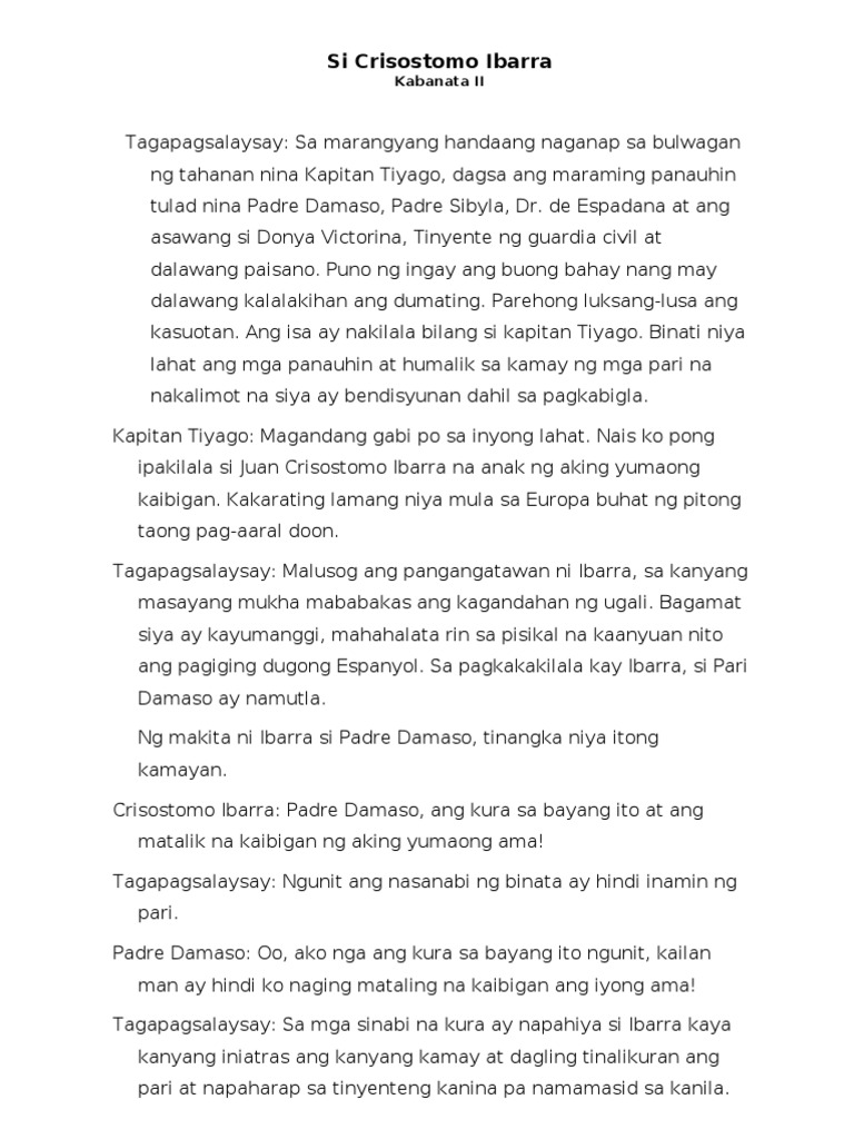 Siya ang nag-iisang anak at tagapag-mana ni Don Rafael Ibarra. Check ninyo ang mga nakalista sa ibaba upang makita ang buod ng bawat kabanata ng Noli Me Tangere. 1 Get Iba pang mga katanungan.